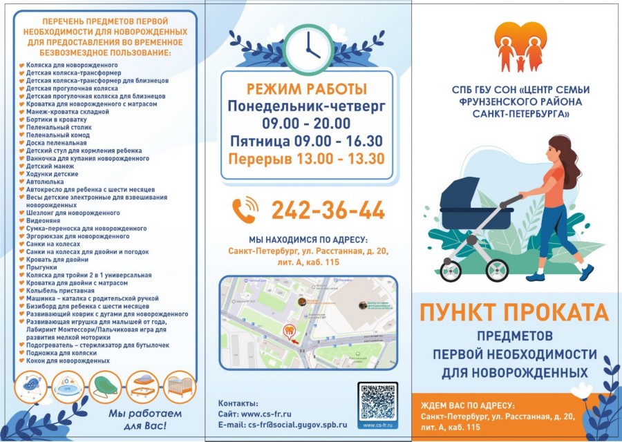 Во Фрунзенском районе на базе Санкт-Петербургского государственного бюджетного учреждения социального обслуживания населения «Центр социальной помощи семье и детям Фрунзенского района Санкт-Петербурга» (далее - «Центр семьи») открыт Пункт проката предметов первой необходимости